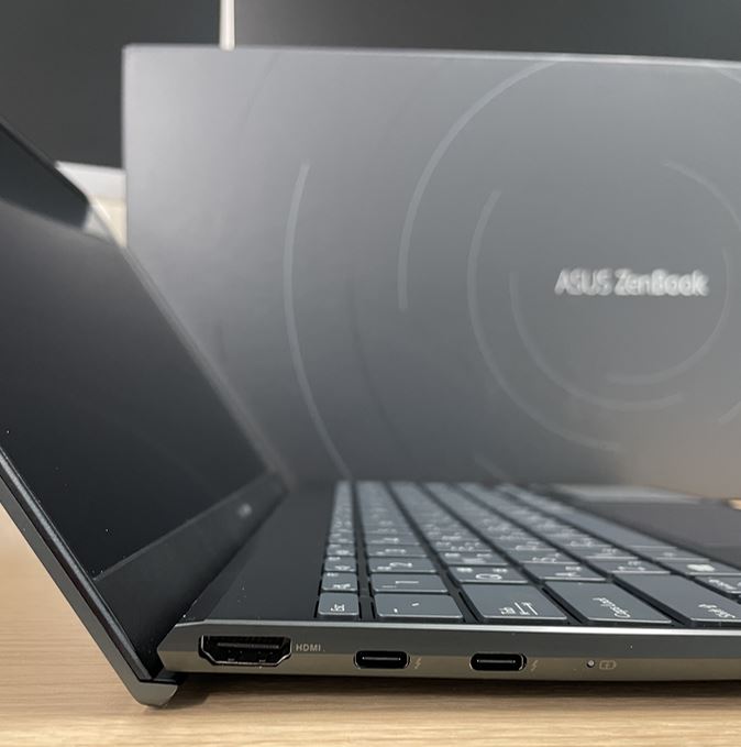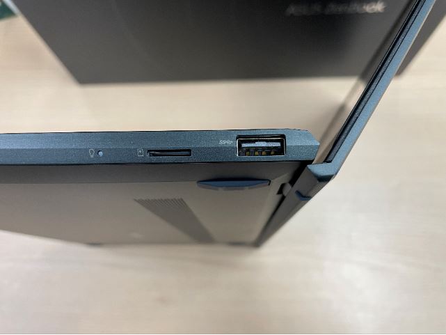 아수스 젠북14의 인터페이스는 총5개의 포트를 지원하는데 우측에는 USB 3.2 Gen1 Type-A 단자 1개와 MicroSD Card슬롯 1개가 있다. 좌측에는 풀사이즈의 HDMI와 썬더볼트4를 지원하는 USB-C type의 단자가 2개 있다. 2.5파이 이어폰젝과 랜포트는 추가 구성품으로 젠더를 별도로 제공한다. 특히나 썬더볼트4를 지원하는 C타입단자는 2개가 모두 PD(power delivery)충전을 지원하기 때문에 기본 제공하는 충전아답터를 사용하지 않고 65W 충전기를 시중품으로 구매한다면 더욱 휴대성이 증가 될 것이다.