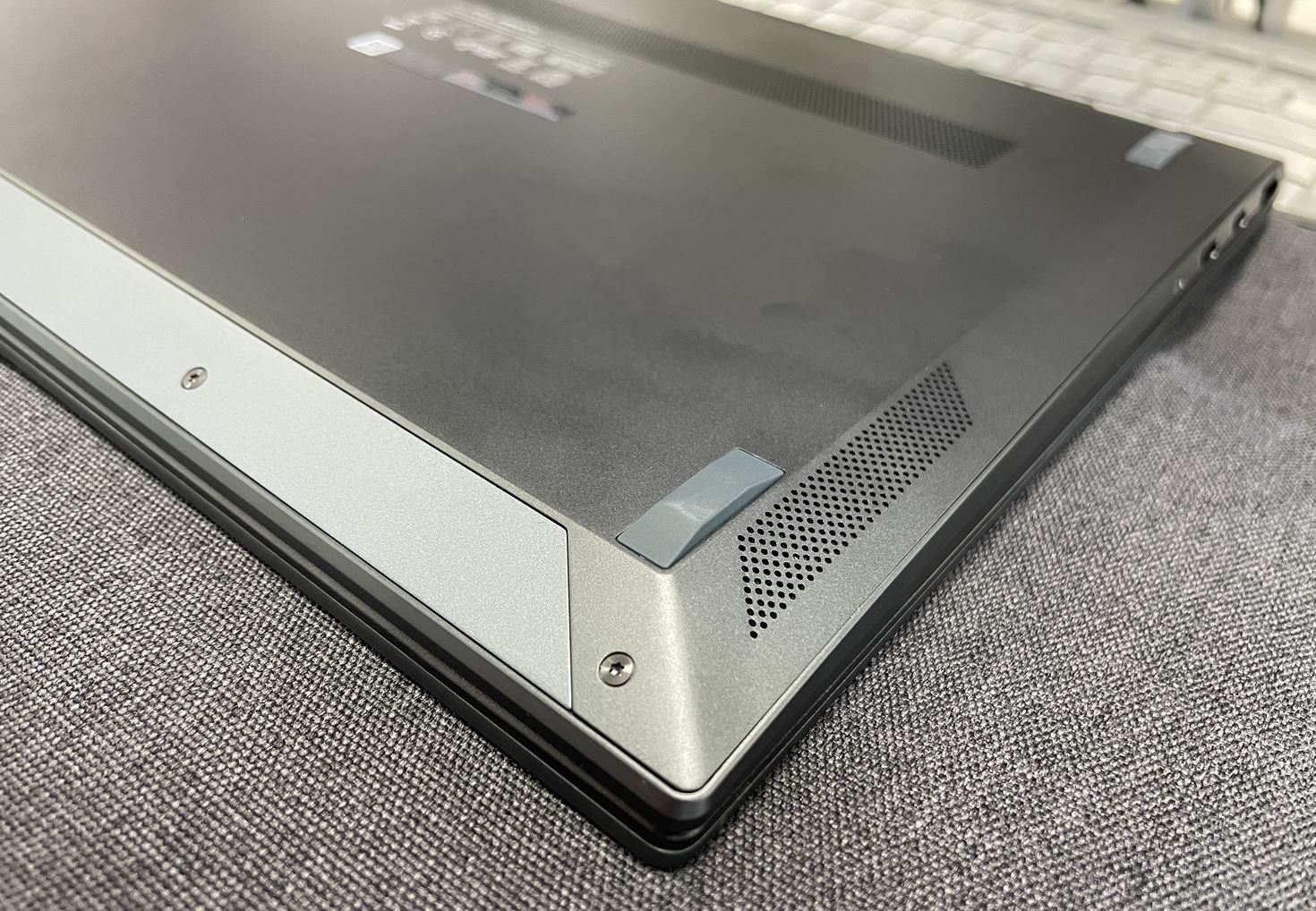 전체적으로 부드러움 보다는 각이 잡혀있는 형태로 상판에도 엣지가 있고 하판의 전,후,좌우의 경사는 노트북을 더욱 슬림하게 보이게 하며 구조상으로도 손으로 잡기 편리하다.