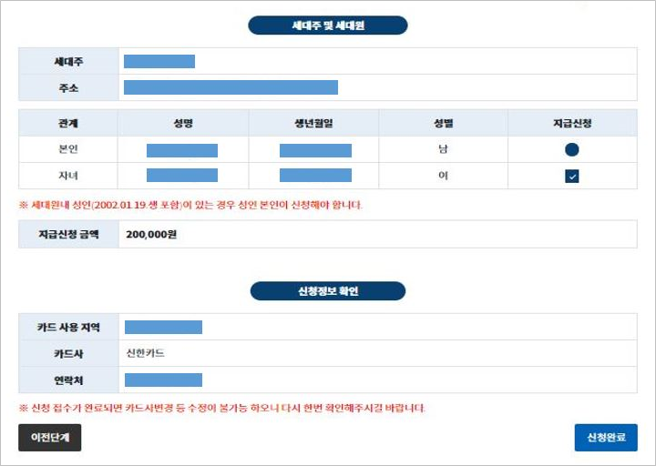 ▶주민등록이 함께 되어 있는 미성년 가족의 경우 법정대리인인 부모가 대리신청 가능성인의 경우 대리신청 불가능