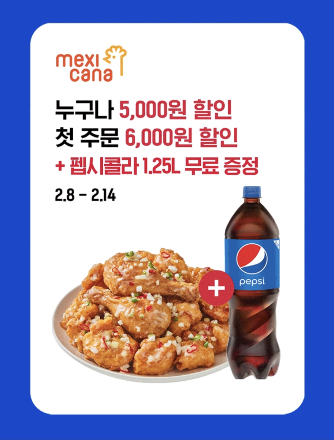 ▶ 첫 주문시 6,000원 할인 + 펩시콜라 1.25L 무료증정